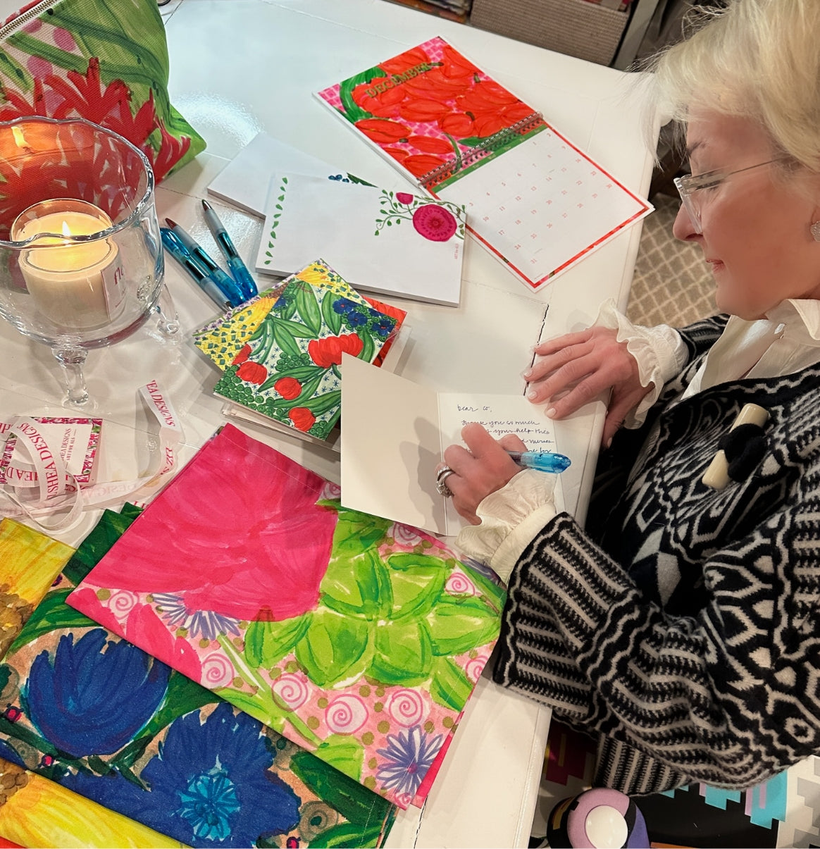 Liz Shea Designs offers a one-of-a-kind original art in an array of products that are both useful and delightfully uplifting. Each piece of Liz’s art is a kaleidoscope of bold, electric color applied with sweeping strokes of unfettered brilliance. Her designs utterly dance on such products as calendars, stationery, tea towels, totes, and more.